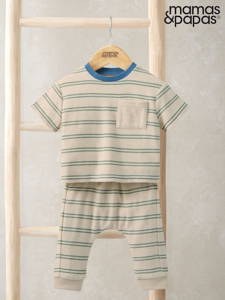 Mamas & Papas Brown Stripe Towelling T-Shirt & Joggers Set