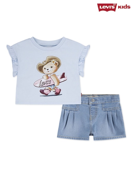 Levi's® Blue Cowboy Bear Short Sleeve T-Shirt and Pleated Shorts Set 2 Piece