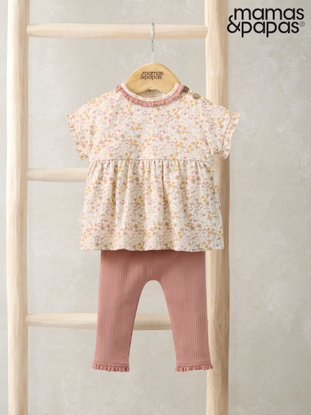 Mamas & Papas Pink Ditsy T-Shirt & Leggings Set