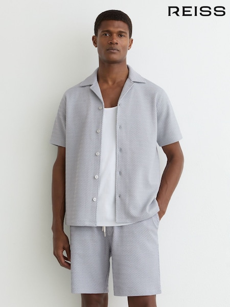 Reiss Soft Blue Nicola Jacquard Textured Drawstring Shorts