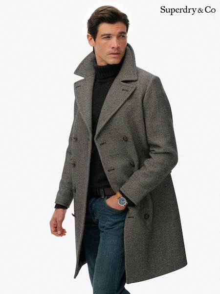 Superdry Black The Merchant Store - Wool Blend Long Coat