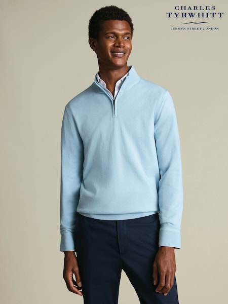 Charles Tyrwhitt Blue Merino Zip Neck Jumper