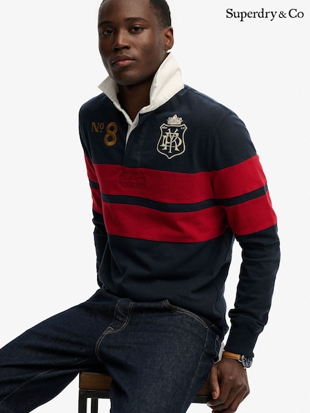 Superdry Blue Vintage Athletic Stripe Rugby Shirts