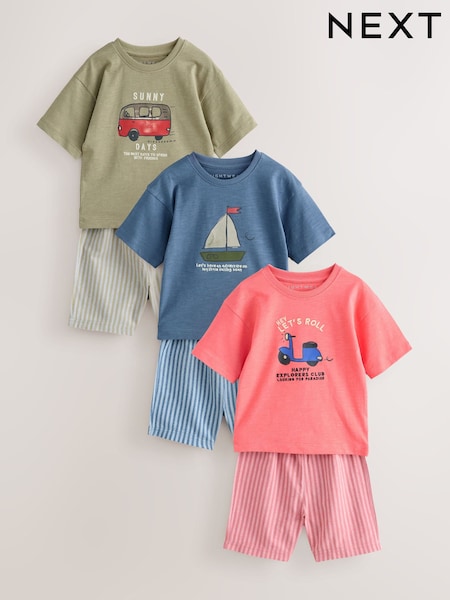 Blue/Green/Coral Transport Woven Short Pyjamas 3 Pack (9mths-8yrs)