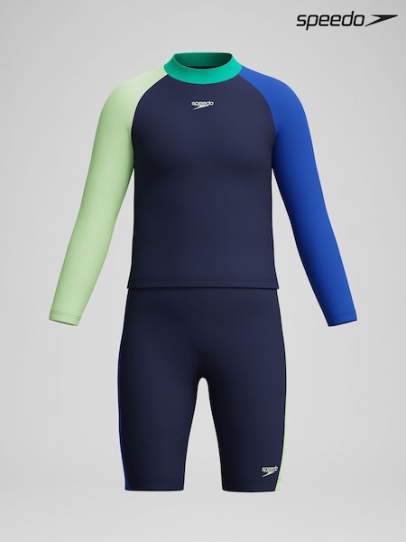 Speedo Blue Long Sleeve Colorblock Rash Guard & Jammer Set