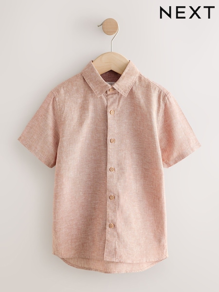 Terracotta Short Sleeve Linen Blend Shirt (3-16yrs)