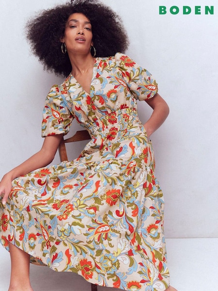 Boden Green Cecily Cotton Midi Dress