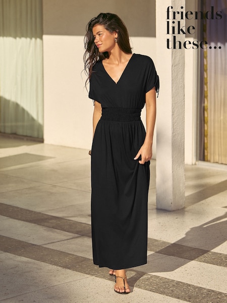 Friends Like These Black V-Neck Shirred Waist Jersey Maxi Dress