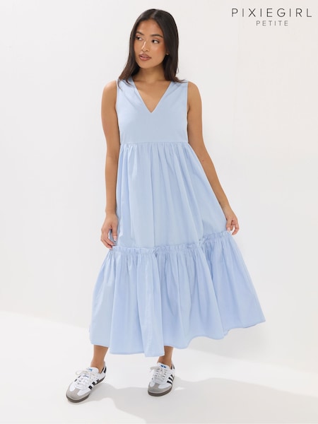 PixieGirl Petite Blue Tie Back Tiered Dress