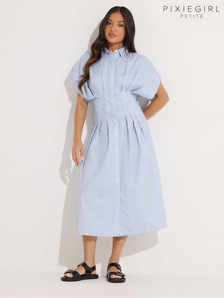 PixieGirl Petite Blue Striped Cinch Waist Shirt Dress