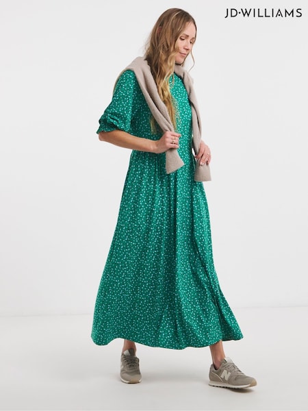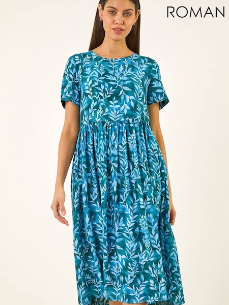 JD Williams Blue Soft Touch 3/4 Sleeve Seam Detail Smock Dress