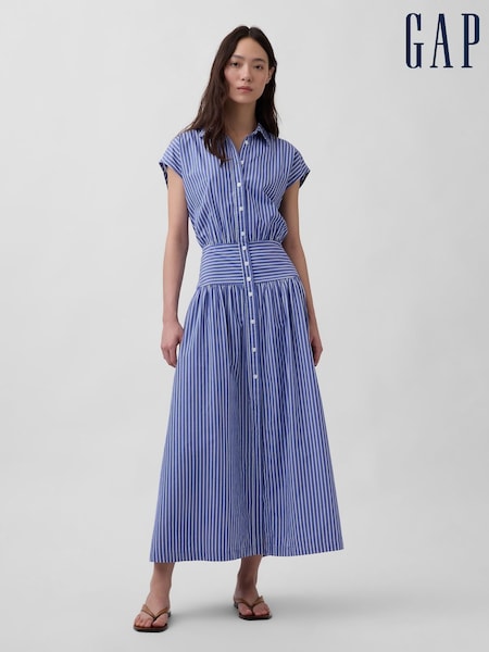 Gap Blue Stripe Poplin Drop-Waist Maxi Shirt Dress