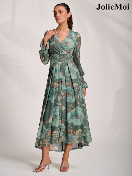 Jolie Moi Green Long Sleeve Mesh Maxi Dress
