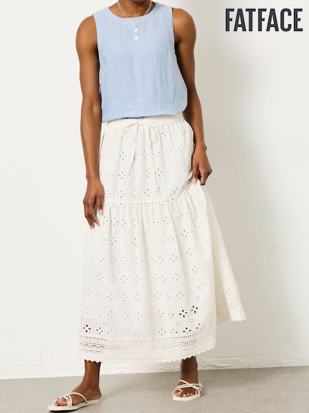 JD Williams White Broderie Scalloped Hem Maxi Skirt