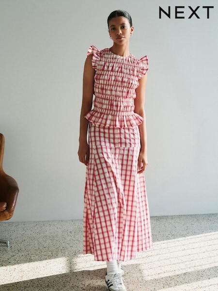 Pink/Cream Gingham Button Down Maxi Skirt