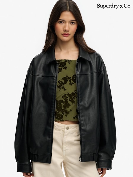Superdry Black Collared Oversized Bomber Jacket