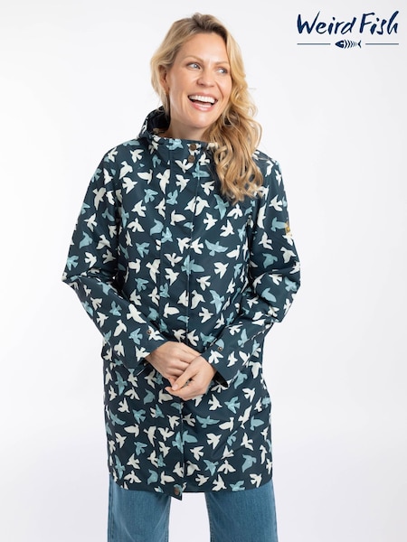 Weird Fish Blue Sena Printed Waterproof Coat