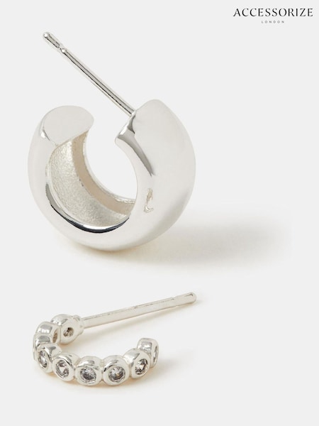 Accessorize Silver Tone Chunky Hoop Earrings 2 Pack