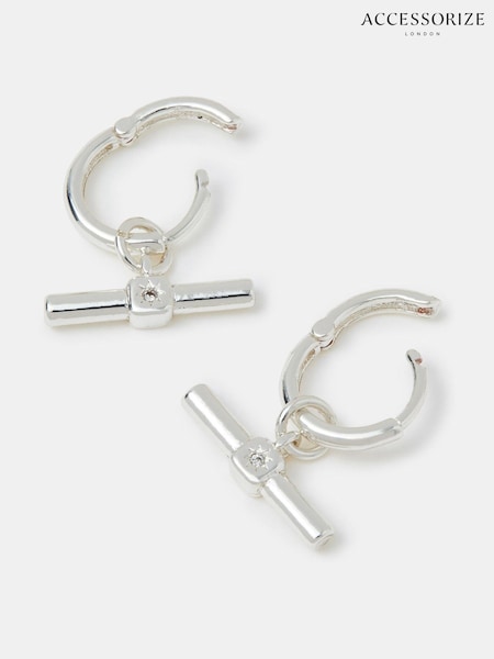 Accessorize Silver Tone T-Bar Charm Hoop Earrings