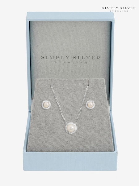 Simply Silver 925 Sterling Silver Pearl Halo Set Gift Box