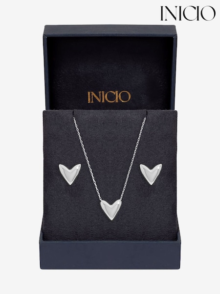 Simply Silver 925 Sterling & Silver Puff Heart Set - Gift Box