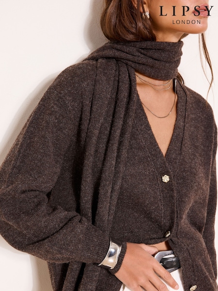 Lipsy Brown Scarf Layer Knit Cardigan Containing Wool