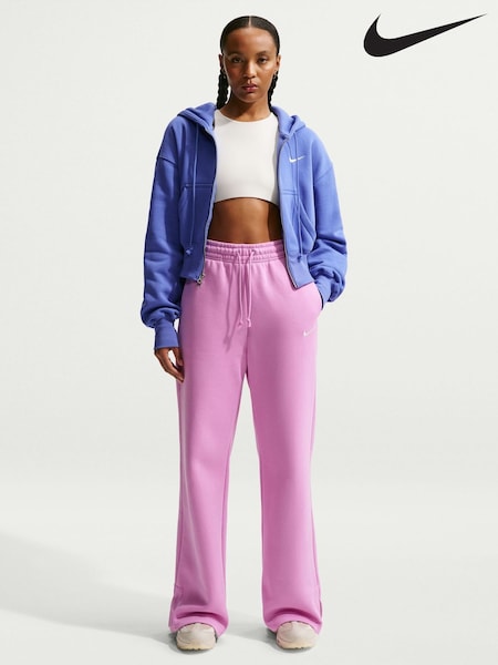 Nike Magenta Pink Sportswear Phoenix Fleece High Waisted Wide Leg Joggers