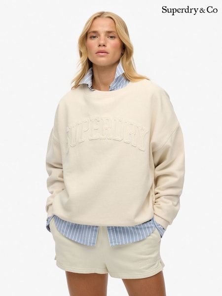 Superdry White Athletic Essentials Tonal Applique Crew Neck Sweatshirt