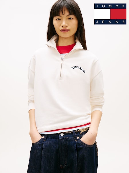 Tommy Jeans White Logo Embroidery Relaxed Quarter-Zip Sweatshirt