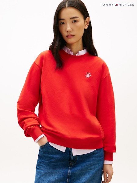 Tommy Hilfiger Red Logo Embroidery Crew Neck Sweat Top
