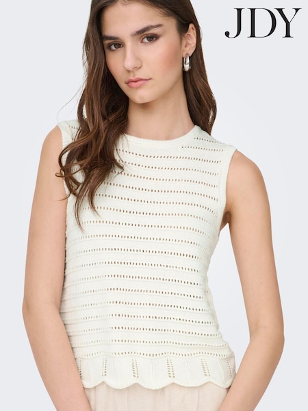 JDY White Crochet Detail Sleeveless Knitted Vest
