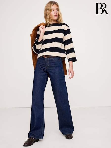 Banana Republic Navy Blue/Cream Stripe Relaxed Cotton Boat-Neck T-Shirt