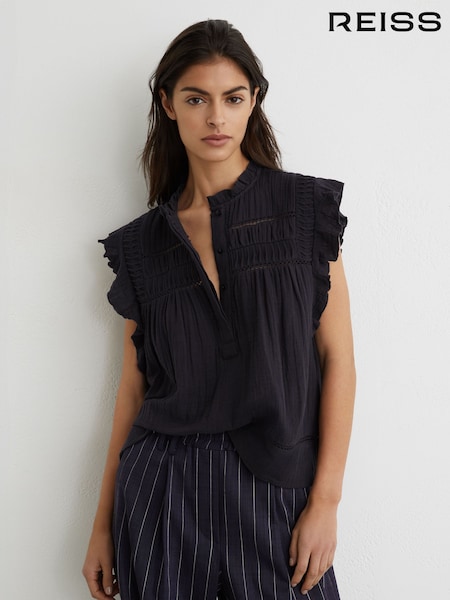 Reiss Navy Florie Cotton Cheesecloth Sleeveless Top