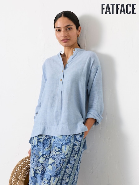 FatFace Julia Blue Petite Linen Popover
