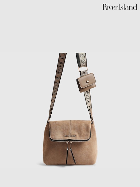 River Island Brown Faux Suede Foldover Messenger Bag