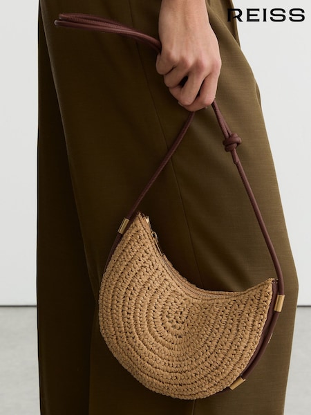 Reiss Natural Harriet Raffia-Effect Half-Moon Shoulder Bag