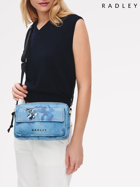 Accessorize Blue Floral Tapestry Denim Make Up Bag