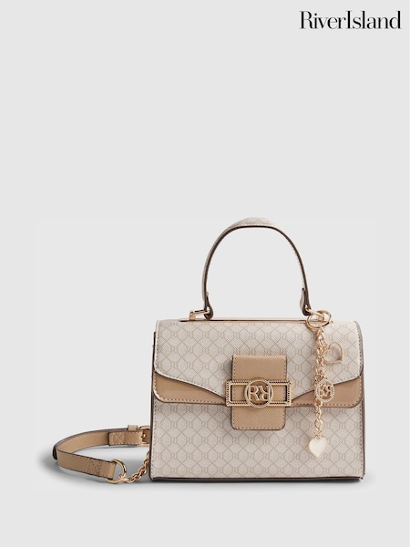 Tommy Hilfiger Cream Monogram Contrast Handle Tote Bag