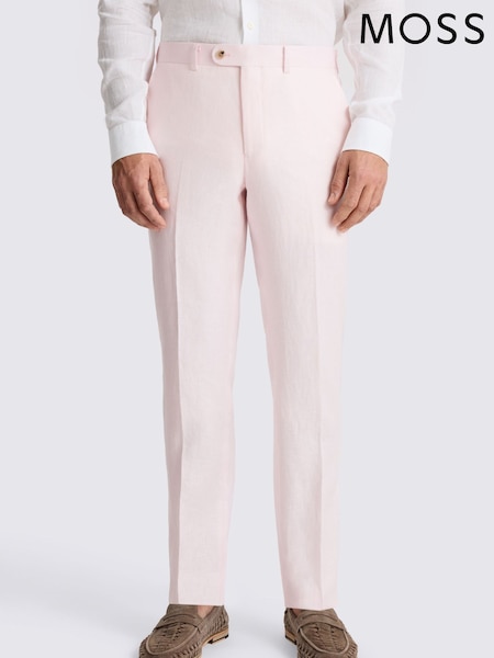 MOSS Pink Tailored Fit Twill Linen Suit Trousers