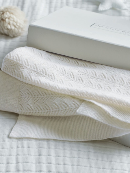 The Little Tailor White The Little Tailor Knitted Stripe Baby Blanket