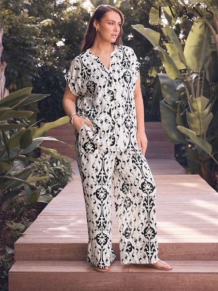 Evans Black Abstract Print Wide Leg Trousers