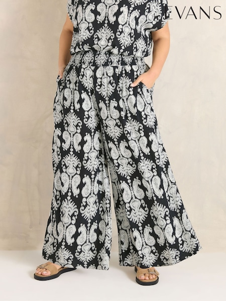 Evans Black Abstract Print Shirred Waist Trousers