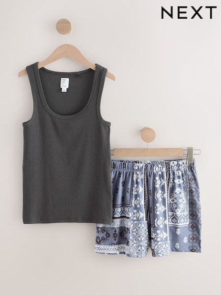 Charcoal Grey Rib Vest Short Pyjamas Set