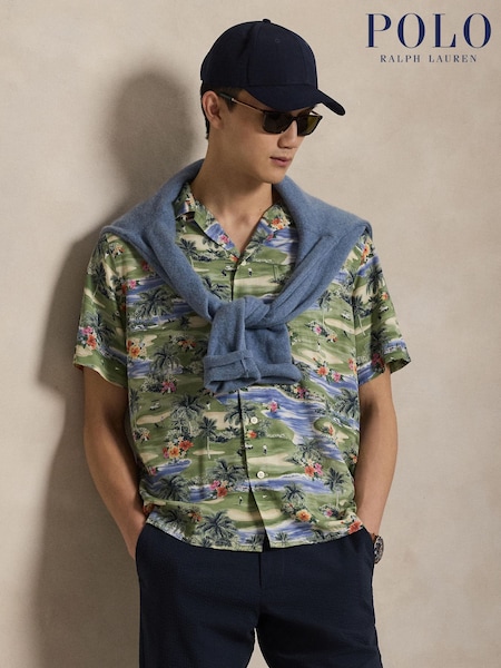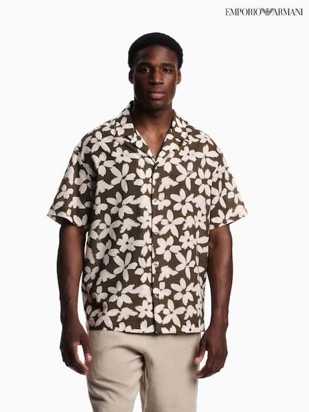 Emporio Armani Green Flower Eagle Beachwear Shirt