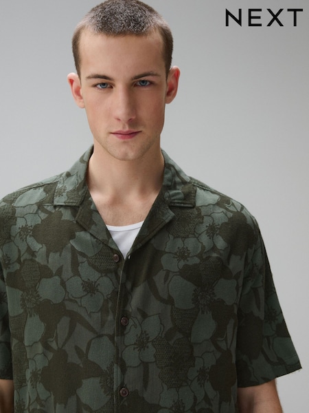 Grønn - Teksturert blomstrete print kortermet skjorte