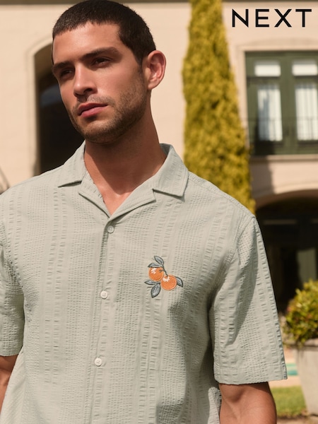 Grønn - Textured Chest Hit Short Sleeve Shirt