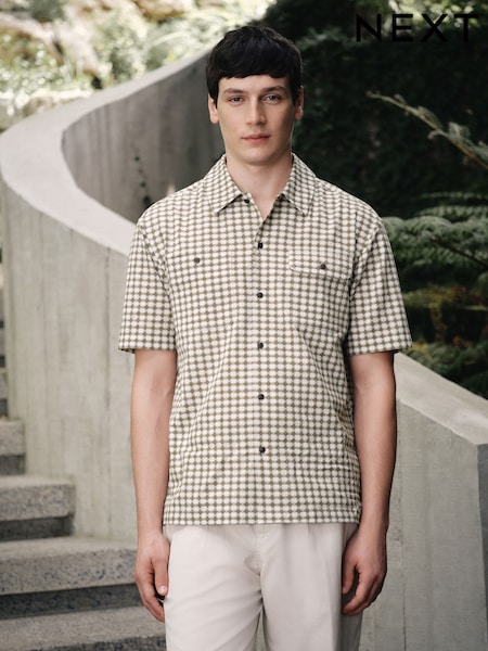 Grønn - Teksturert Rutemønster Kortermet Skjorte