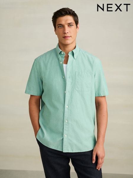 Grønn - Kortermet - Lett Oxford-skjorte med lomme
