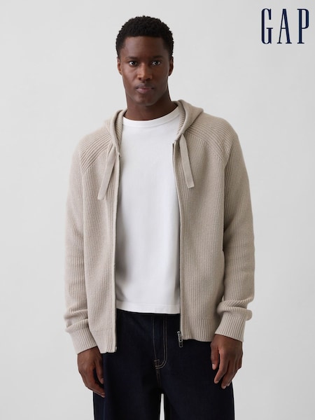 Brun - Gap genser i merinoull-blend med kabelstrikk