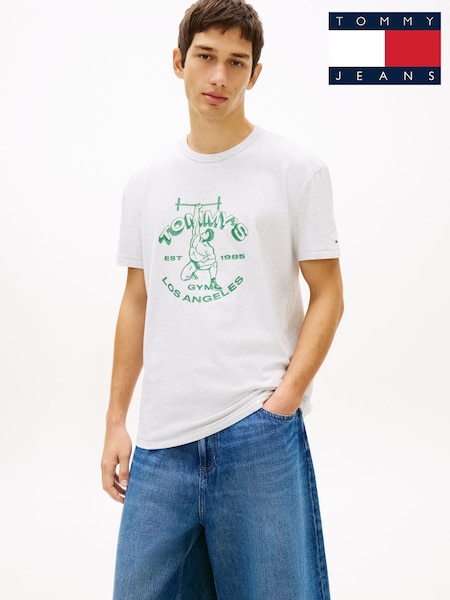 Hvit - Tommy Jeans Graphic Peached Jersey T-skjorte